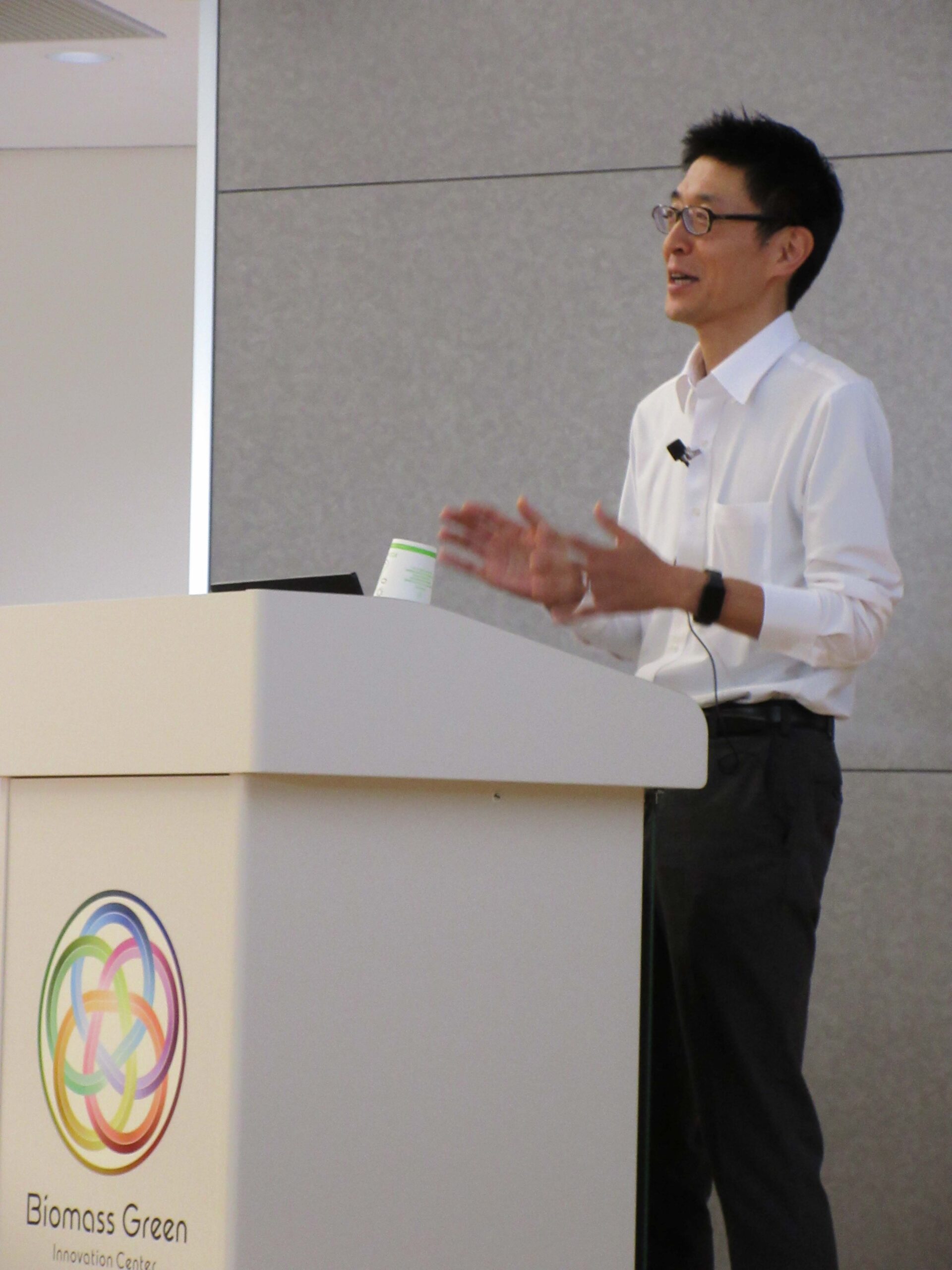 2025年10月17日(金),京都大学の伊福伸介教授をお招きし,「セルロースとは一味違うCNF「キチンナノファイバー」の多様な生理機能と実用化の取り組み」というタイトルで第2回“キョウ”を繋ぐシンポジウムをバイオマス・グリーンイノベーションセンター(BGIC)で開催しました。